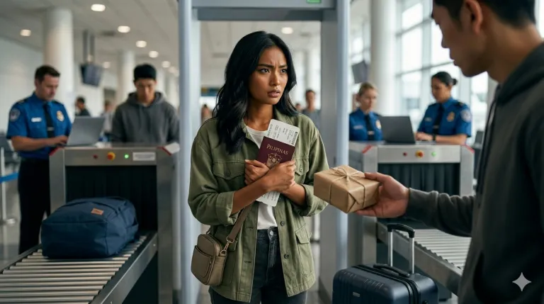 This is one of the oldest travel-related scam tactics. The problem is simple: you have no idea what is inside the item, and once you agree, you become responsible for it.