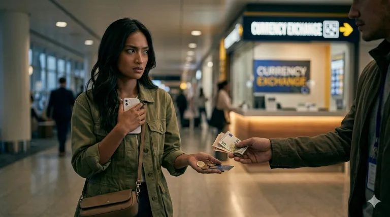 Currency exchange scams can involve fake bills, incorrect amounts, or distractions during the transaction. Airports already have authorised exchange counters and ATMs, which are far safer options.