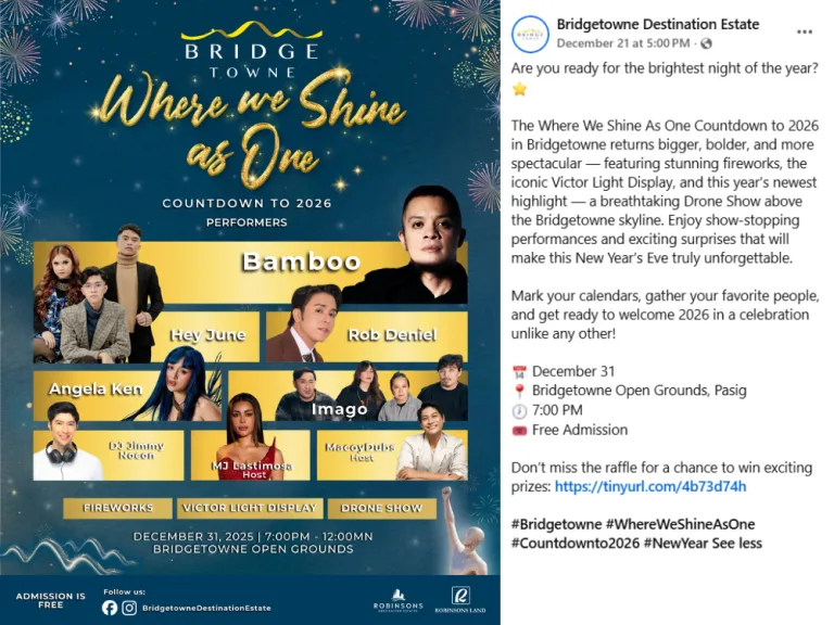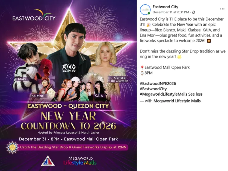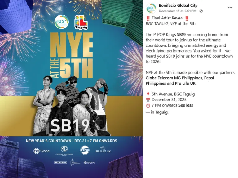 If you are willing to deal with the crowds and pack a bit of patience, you can catch some of the biggest names in the industry on a budget! We are talking about major stars like SB19, Angeline Quinto, and PBB Collab ex-housemate Klarisse de Guzman, along with many other OPM legends. To help you plan your night, we listed the best spots from the heart of Manila to the provinces where you can find free countdown shows and fireworks to ring in 2026.