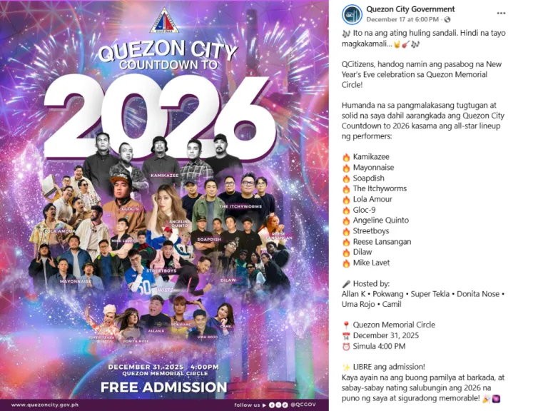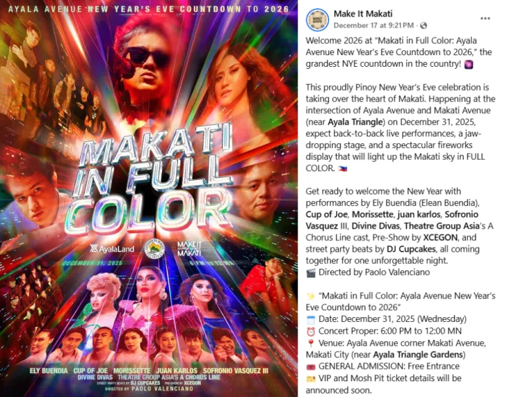 Welcoming 2026 in the Philippines does not have to be expensive. You can enjoy grand fireworks and live music for free by visiting these community countdowns in Metro Manila and the provinces. Since many hotel events cost too much, these free public shows are the best way to see your favorite OPM artists and big light displays without spending your savings.