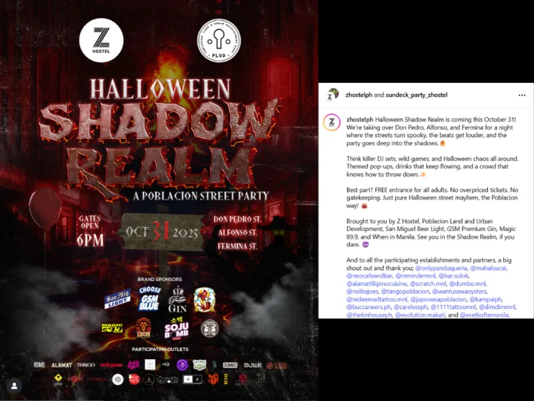 We’re starting with a classic. The Z Hostel and Kampai crew are bringing back their epic street party with “Ready Poblacion One: A Z Street Halloween Special powered by Budweiser.”
