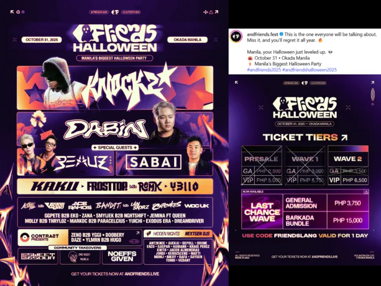 If your Halloween vibe is more “massive rave” than “haunted house,” this one’s it. On October 31, &Friends takes over The Cove at Okada Manila from 4 PM to 4 AM.