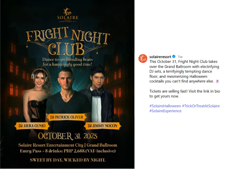 If you want something more luxe, head to Solaire Grand Ballroom for Fright Night Club on October 31. DJs Arra Gunio, Patrick Oliver, and Jimmy Nocon will take over the decks.