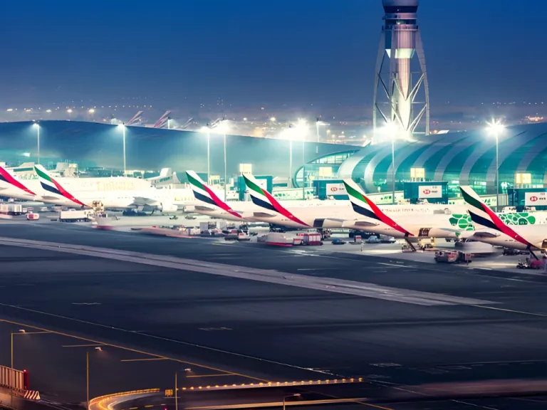 Dubai International Airport (DXB). Emirates has suspended all operations until at least 15:00 local time on Monday. Reports indicate the airport area itself sustained some damage during the strikes, with four staff members injured.