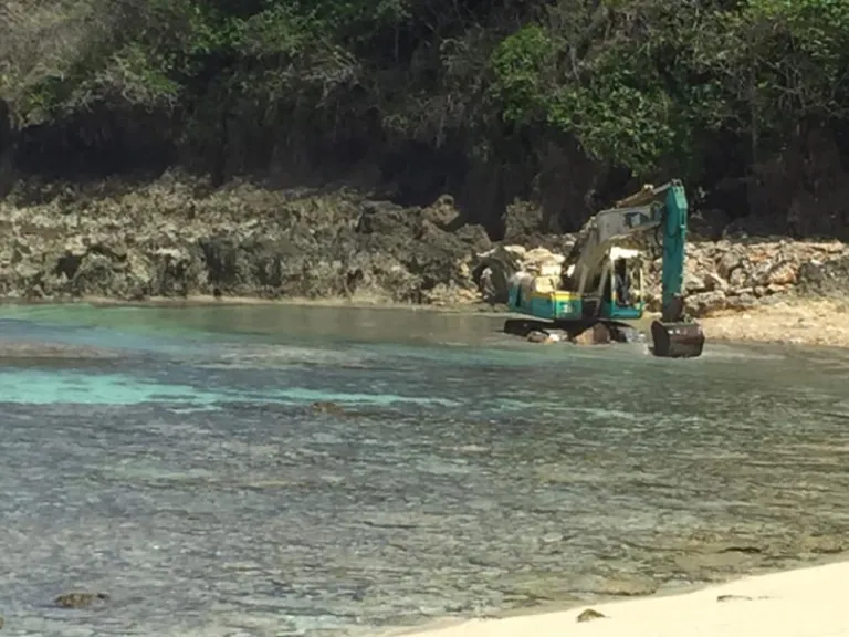 The controversy started when reports of coral reef destruction in Tuason Beach surfaced online. Photos of a backhoe working near the shore sparked outrage among residents who accused a “foreign developer” of destroying the reefs for profit.