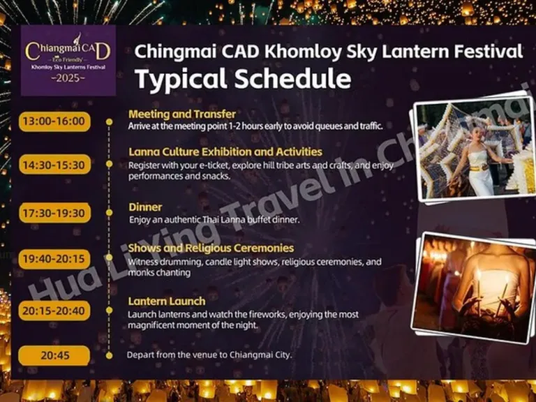 Chiang Mai CAD Yi Peng Khomloy Sky Lantern Festival (Hualiying Travel). One of the biggest and most popular. Tickets start at THB 9,560 (around PHP 17,000 per head). Packages include lanterns, a krathong, dinner, and transfers.