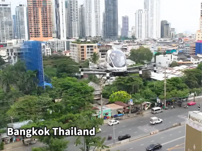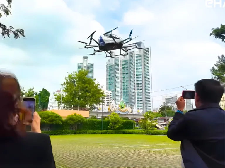 In partnership with the Civil Aviation Authority of Thailand (CAAT), the project allows EHang’s fully electric aircraft to take off in designated test zones to study how autonomous air travel could fit into city life and tourism.