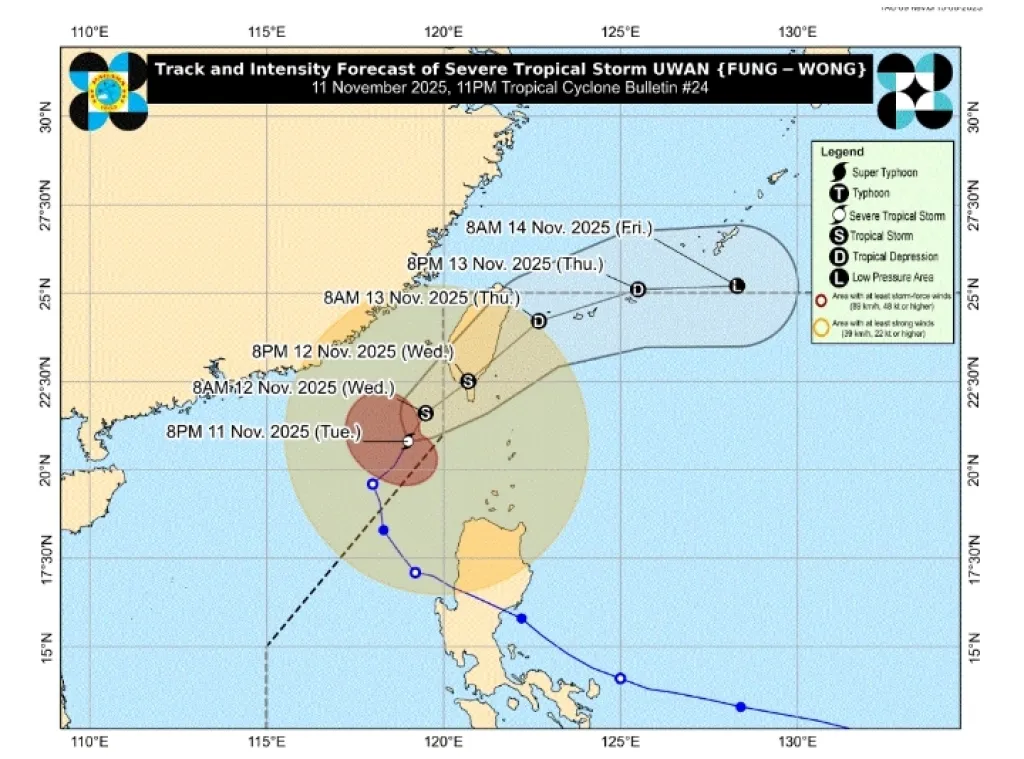 Typhoon Uwan has exited the Philippine Area of Responsibility (PAR), but it may re enter PAR by Wednesday afternoon (12 November 2025) according to PAGASA. This possible re entry is due to Uwan’s curved track near Taiwan, which could bring its circulation back into the country’s monitoring zone. Although the typhoon has weakened into a tropical storm, its wide rainbands could still bring rain and strong winds to parts of Northern Luzon, particularly in coastal and mountainous areas. Travellers should stay alert, monitor weather advisories, and be cautious when heading north.