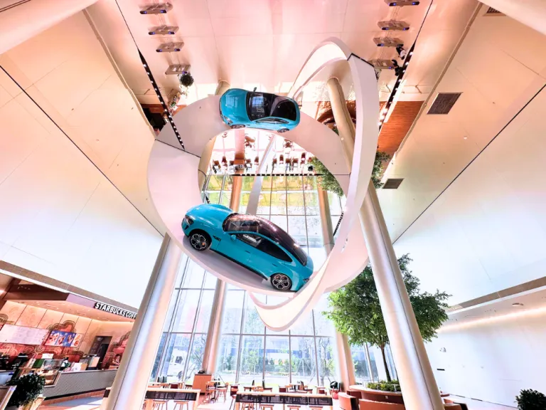 The tour is designed to be as much of a spectacle as it is an industrial visit. In the lobby, you are greeted by an SU7 Max suspended from the ceiling on a Mobius Strip frame. It makes it clear from the start that this is not a typical, dusty car plant.