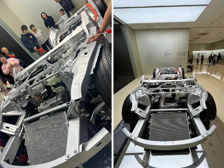You will board a shuttle to move through the heart of the production line. While photos are strictly forbidden inside the workshop, the scale is unforgettable. You will see 9,100-ton die-casting machines and more than 700 robotic arms working with total precision.